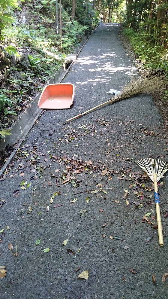 結構クスノキの落ち葉が多く、竹箒で掃くとだんだん腕が痛くなってきました。